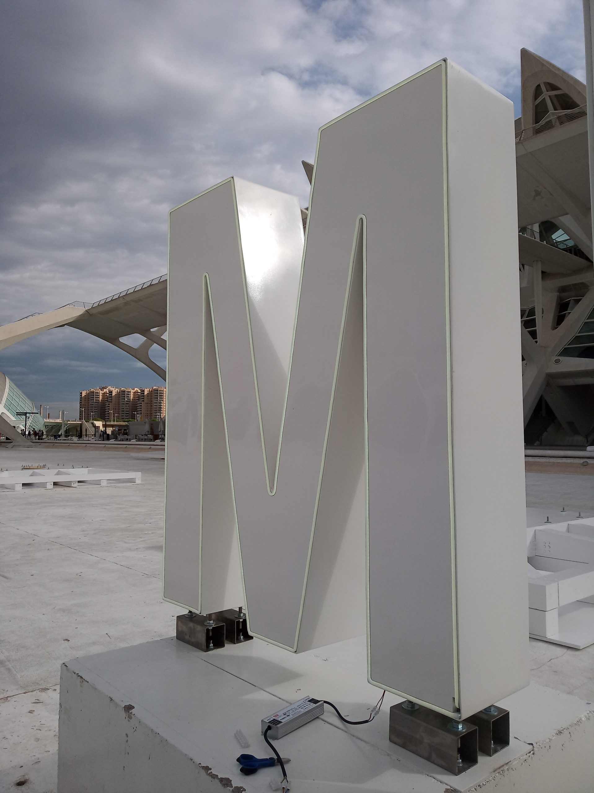 Se trata de la creación e instalación de un total de 55 letras corpóreas que se encuentran repartidas a lo largo del mayor complejo arquitectónico, cultural y de entretenimiento de la ciudad de Valencia, la Ciutat de les Arts i les Ciències.
