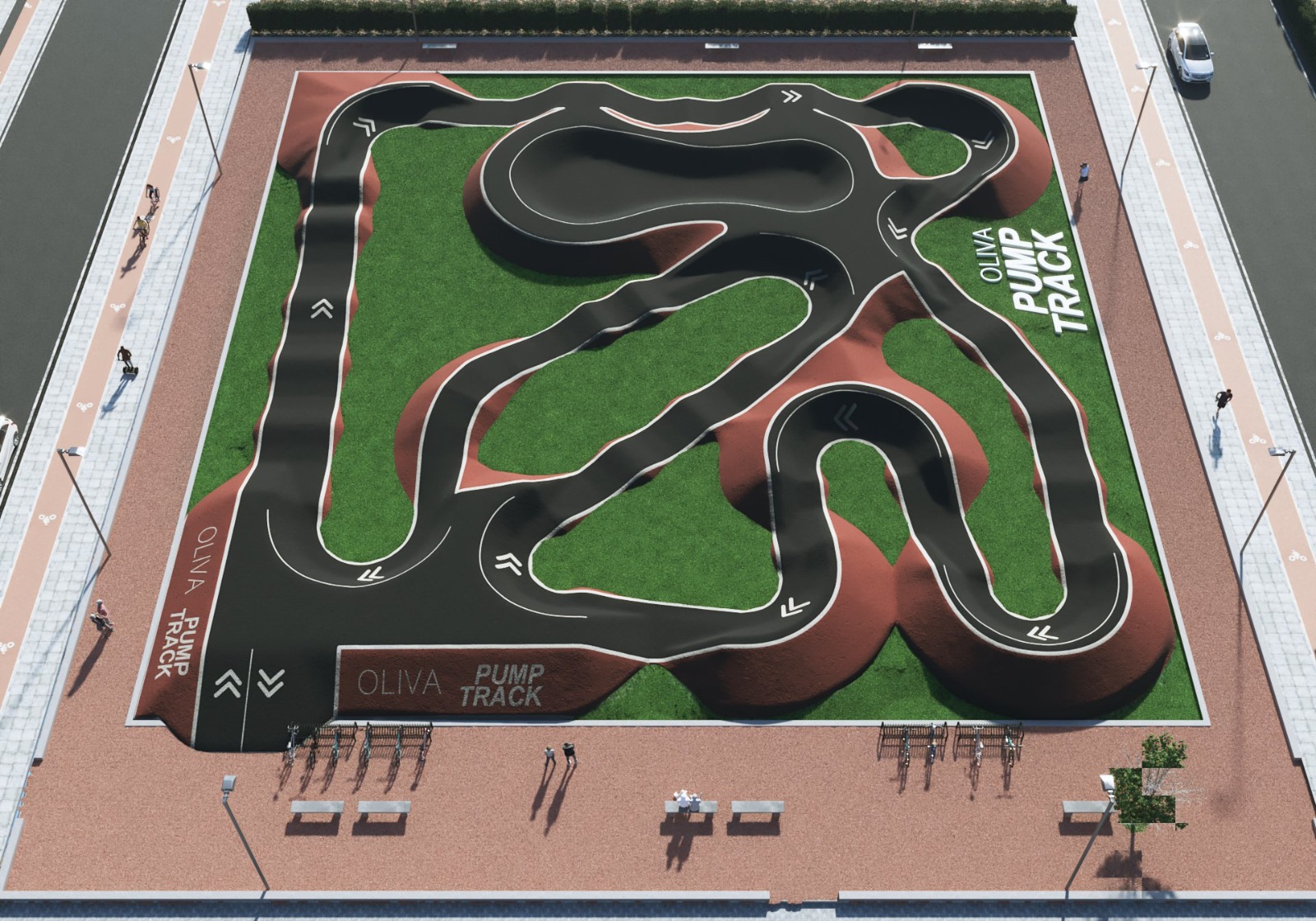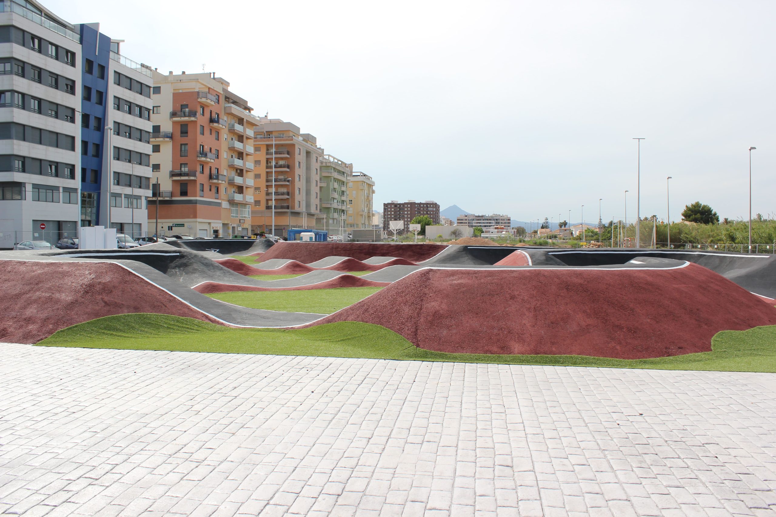 Este circuito de curvas y montículos está pensado para que patines, monopatines, skates y bicicletas puedan avanzar mediante el uso de su propio impulso, en lugar de pedalear.