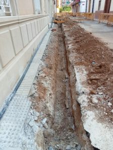 Los trabajos consisten en la ejecución de las obras de reurbanización y renovación de infraestructuras de los servicios de suministro de agua potable y saneamiento, complementando la mejora de la trama urbana del ámbito de actuación.